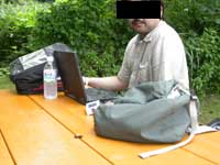 ※え~。仕事関係者の方へ。この通り、ネットワーク環境はもってきてるので、急ぎの仕事は対処できます。よろしく。